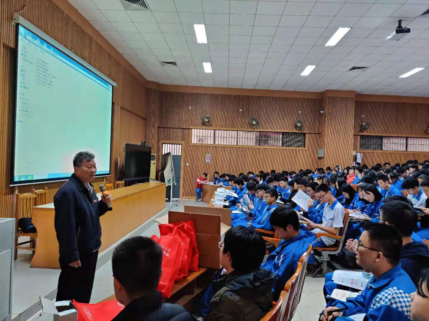讲座伊始,蒋金良代表华南理工大学广州学院对于此次新华中学的讲座接待工作表示了诚挚的感谢,并做了关于“大学梦” 的讲话:看着同学们都朝气蓬勃,正直青春年少的好时光,必定是需要去大学深造、回报父母、回报社会的。此次代表华南理工大学广州学院来做此次招生宣传,向同学们介绍学校、介绍热门专业,希望大家能够对大家未来的报考有所帮助。锋利的剑是需要打磨的、傲骨的梅花是要经得住严寒的冬天的,想考上好的大学,必须得经过努力拼搏。同时,我们也希望通过此次讲座,也让大家更能深刻理解大学生活、大学的专业,期待大家明年高考都能考出好成绩,选择自己理想的大学。