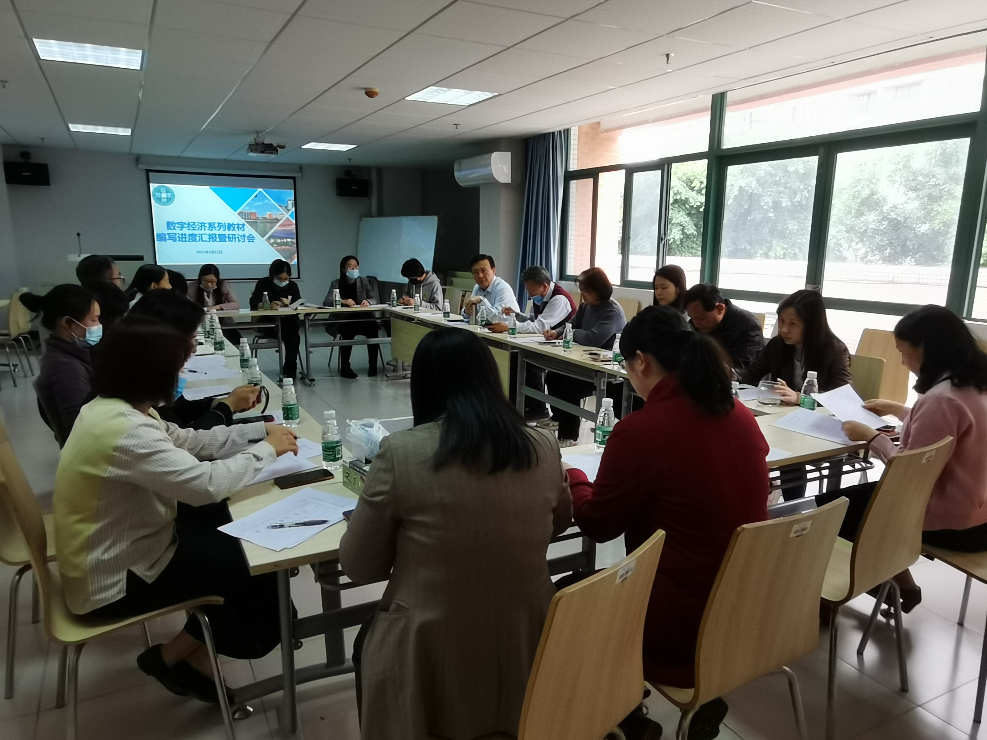 本网讯(记者 肖秀华)3月11日下午,122cc太阳集成游戏如期召开数字经济系列教材编写进度汇报暨研讨会。122cc太阳集成游戏院长杨星,党总支书记、副院长蒋金良,副院长王业雯,总副主编梅林海教授和李彬教授以及十五位主编等共22人参加了此次会议。