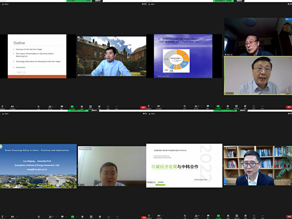 本次国际学术研讨会邀请了来自中、日、韩、英四国的专家学者。他们分别是:韩国建国大学金旭教授、日本兵库县立大学市川一夫教授、英国邓迪大学牟效毅教授、中科院广州能源所能源战略与低碳发展研究中心骆志刚副研究员、粤港澳大湾区碳中和金融研究基地梅林海教授。四国专家围绕“如何实现粤港澳双碳目标,促进可持续经济发展”进行学术演讲。会议来自政府机构、科研机构、金融机构、企业界、新闻界和关注碳达峰、碳中和、碳金融等我校师生共300余人参加,由广州城市理工学院122cc太阳集成游戏院长杨星教授主持。
