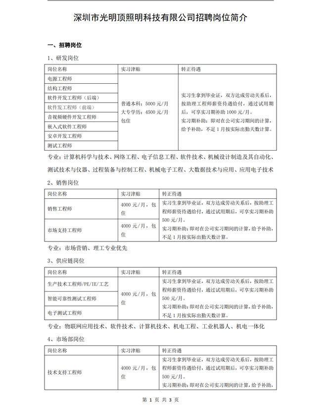 招聘信息 | 深圳市光明顶照明科技有限公司