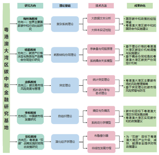 基地依托低碳经济与碳金融研究中心粤港澳大湾区财税研究中心,形成一体双翼研究架构